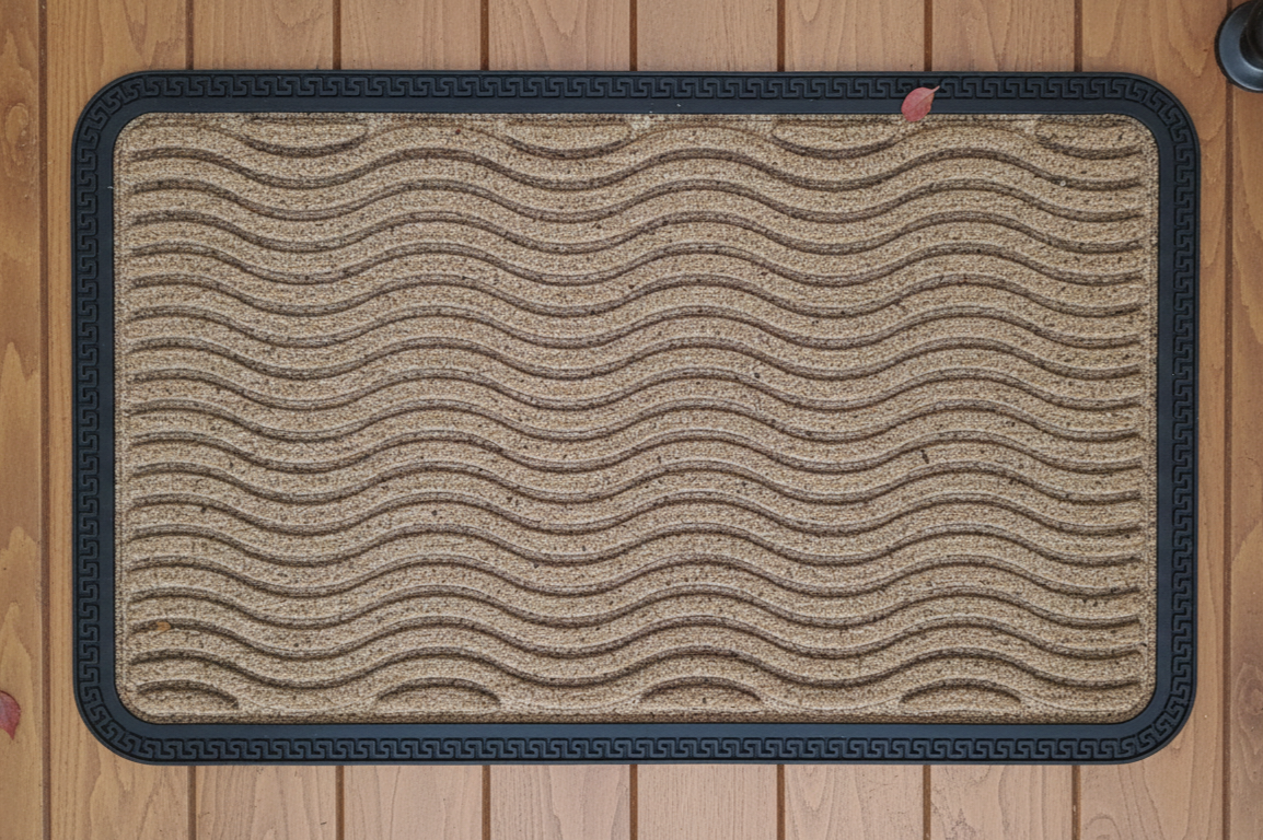 Waterproof Wave design Mat - Beige & blue - Non-Slip for Bathroom/Outdoor Use