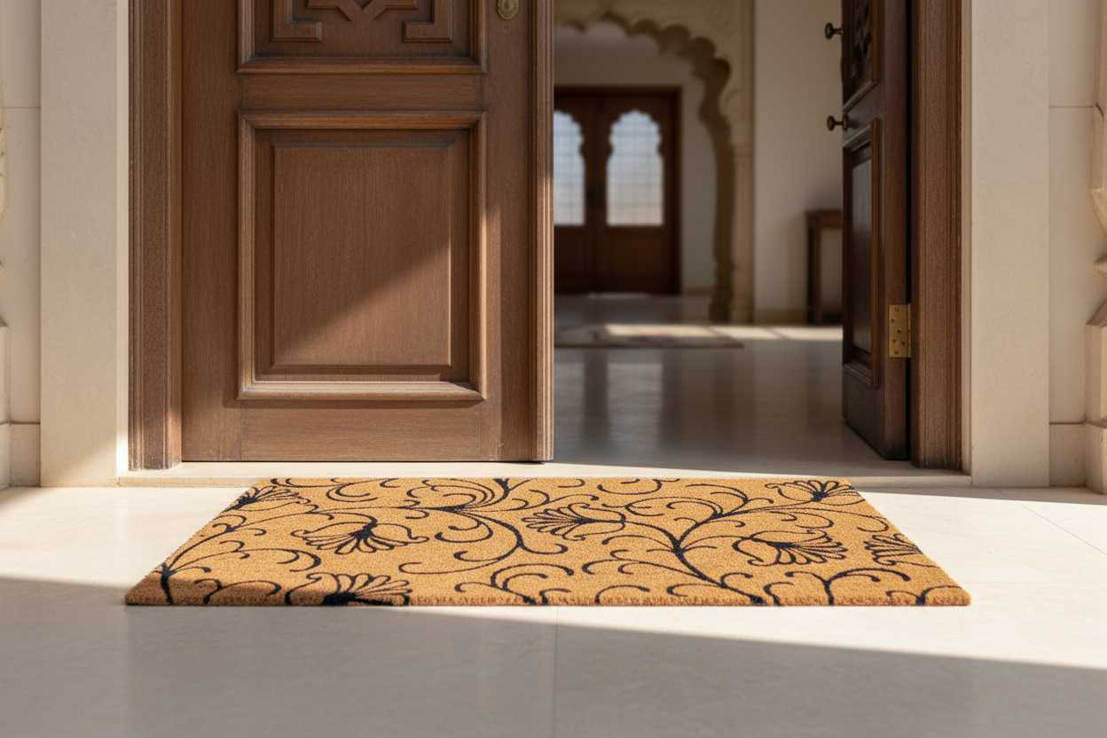 OnlyMat Elegant Scroll & Vine Coir Doormat with Anti-Slip Backing