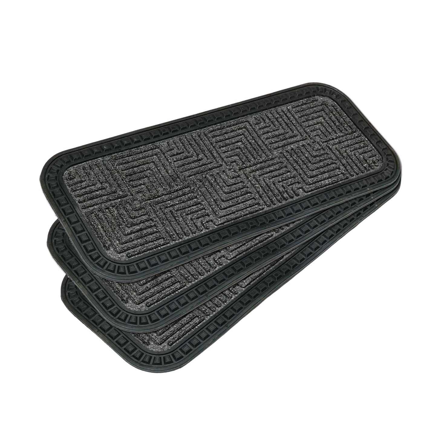 Modern Geometric Anti-Slip Dark Grey Stair Treads (25x60 cm) - Low Profile Step Mat with Non-Slip Rubber Backing