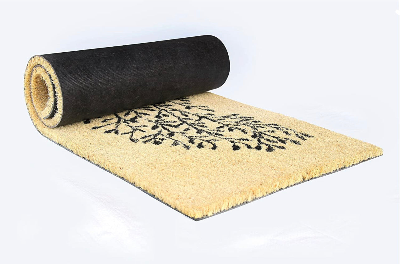 ओनलीमैट लंबा काला रंग ट्री प्रिंटेड कॉयर फ्लोर मैट (बेज रंग)