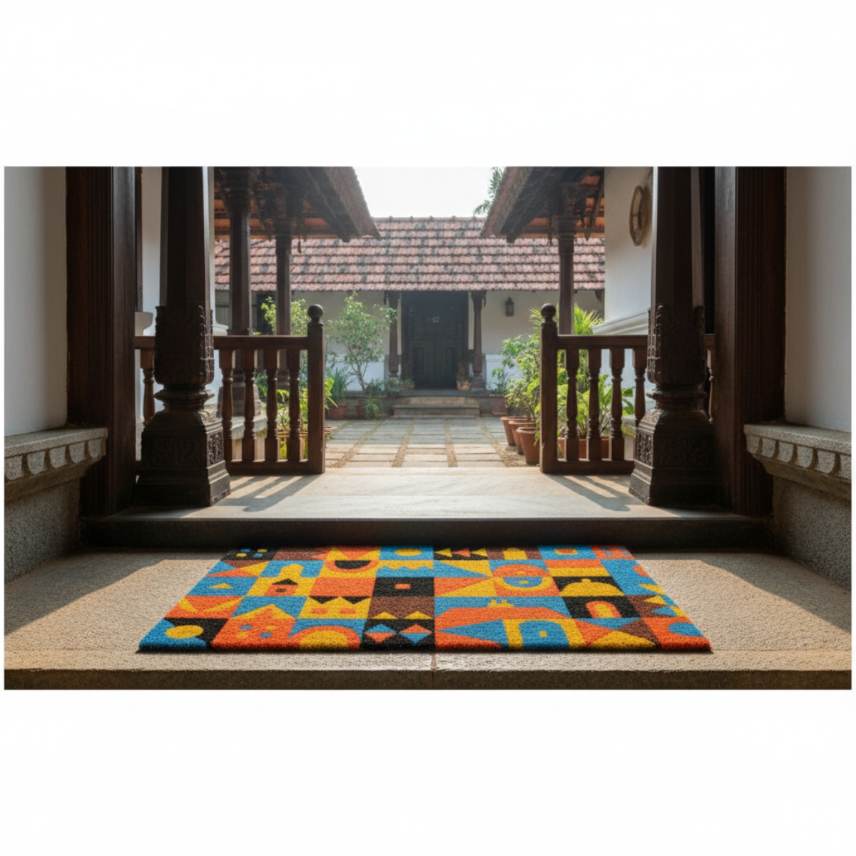 - आपके मेहमानों के स्वागत के लिए आकर्षक मुद्रित डिजाइनों के साथ प्राकृतिक कॉयर डोर मैट।
