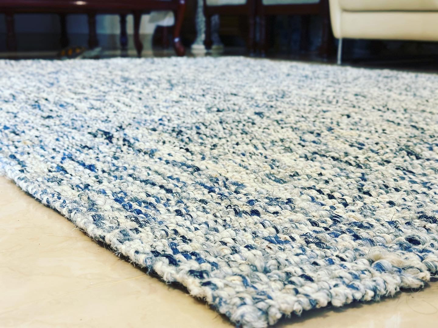 This Designer Handwoven Jute Carpet features a unique blend of blue and white colours that adds a touch of elegance and sophistication to any room. This carpet is made from high-quality jute fibres that are durable and environmentally friendly. The handwoven design gives the rug a unique texture and character that adds depth and interest to your space. This carpet is perfect for adding a touch of warmth and comfort to any living room, bedroom or dining room. The rug is easy to clean and maintain.